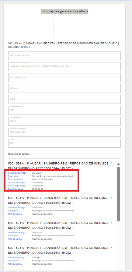 Precisamos muito que o nome do executante da OS e hora sejam exibidos no histórico do ativo.